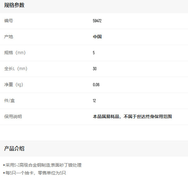首頁>產品中心>螺絲批>旋具頭>世達5件套8mm系列30mm長六角旋具頭