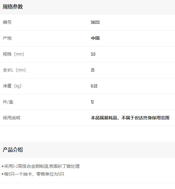 首頁>產品中心>螺絲批>旋具頭>世達6.3mm系列25mm長六角旋具頭3mm
