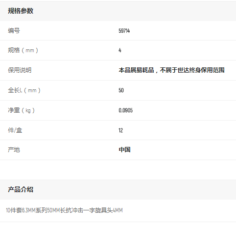 產(chǎn)品名字:世達(dá)10件套6.3MM系列50mm長(zhǎng)一字旋具頭4MM