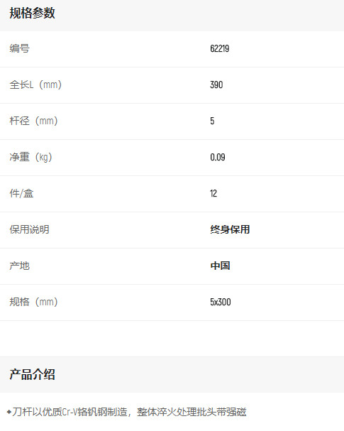 首頁>產品中心>螺絲批>一字螺絲批>世達A系列一字批5x300mm
