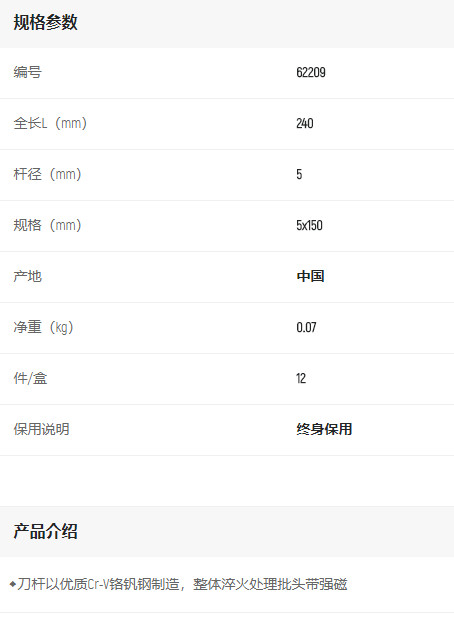 首頁>產(chǎn)品中心>螺絲批>一字螺絲批>世達A系列一字批5x150mm