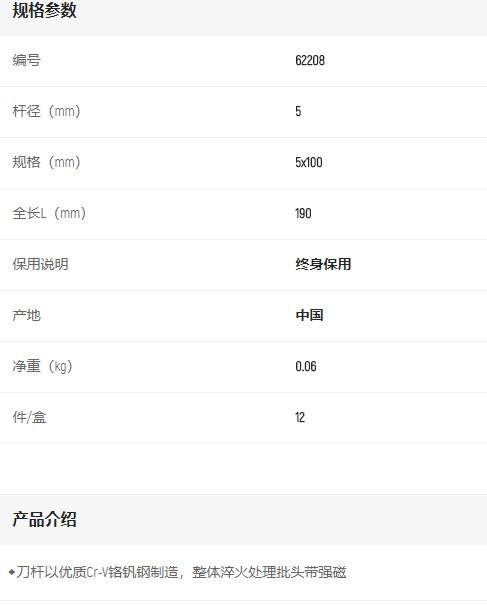 首頁>產品中心>螺絲批>一字螺絲批>世達A系列一字批5x100mm