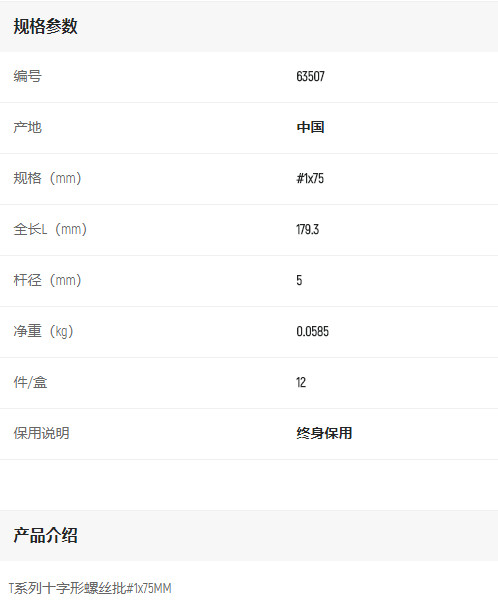 首頁>產品中心>螺絲批>十字螺絲批>世達十字批#1x75mm