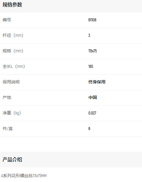 首頁>產品中心>螺絲批>其他螺絲批>世達花型螺絲批T8*75mm